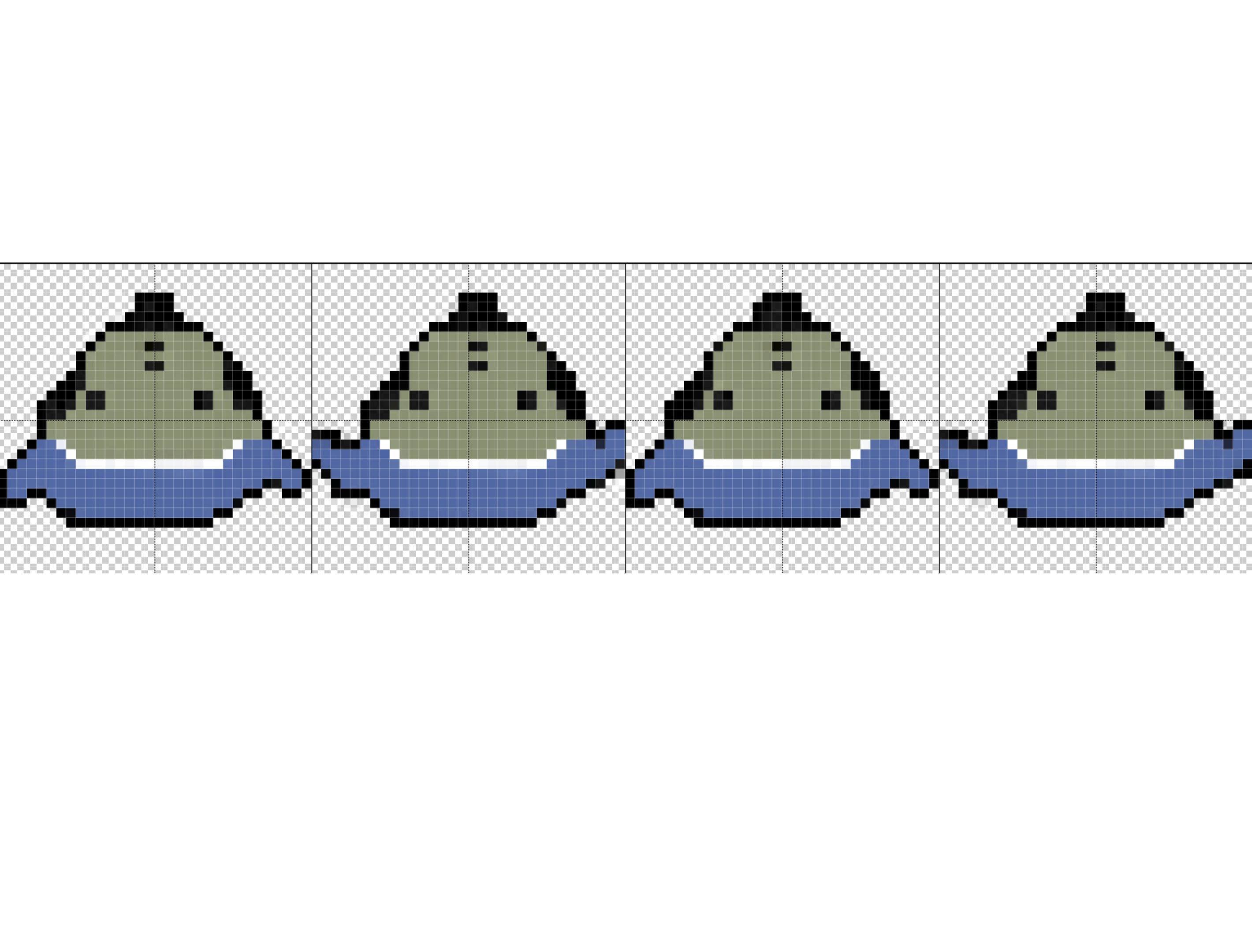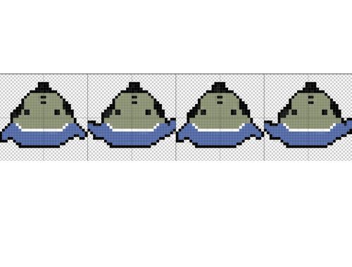 I created a pixel spreadsheet using m drawing for animation, 4 movements in total of the fins moving up and down
